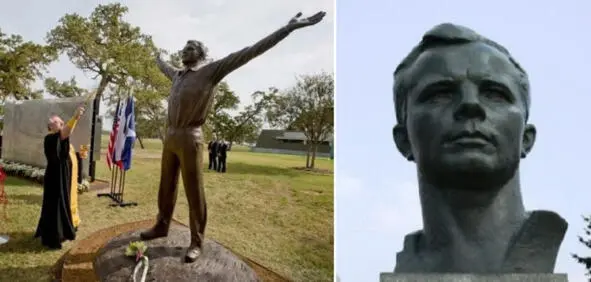 Местные и федеральные власти не препятствовали увековечиванию в США имени Юрия Гагарина. В Хьюстоне был установлен памятник (фотография слева), в Колорадо-Спрингс бюст Юрия Гагарина (фотография справа). В Хьюстоне, рядом с памятником Гагарину, слева, была установлена памятная «доска» из нержавеющей стали, которая была посвящена «космонавту» США Гленну. Но на ней нет никакого упоминания главного «достижения» США – лунных «полетов». Нет имен «космонавтов» из шоу «Аполлон-11». Следует обратить внимание, что стоимость бронзовых памятников Юрию Гагарину во много раз выше стоимости сомнительного изваяния из тонкой стали, которое было посвящено американскому «полету». Но это не остановило спонсоров установки памятников в США русскому космонавту. Национальный музей авиации и космонавтики в Вашингтоне обладает лучшей в мире коллекцией аэрокосмической техники. Он ежегодно принимает сотни тысяч посетителей. И там, в этом музее, расположен бюст Гагарина. Это четвертый по счету памятник первому космонавту, который установлен в США. Памятник Юрию Гагарину установили так же в планетарии Адлера в Чикаго, в Музее авиации и космонавтики, в городе Нью-Йорк. Самый большой памятник был установлен в Хьюстоне. А вот памятники «представителям» американской космонавтики!