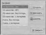 Что делать? Нужно вернуться в окно программы Звуковыжималка, открыть окно настроек и щелкнуть на кнопке Изменить профили. Раскроется окно редактирования профилей (рис. 5.23).