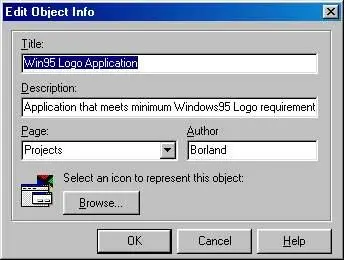 После добавления шаблона в хранилище вы вдруг обнаруживаете, что совсем забыли внести в него последние исправления. Вы можете сделать это, используя диалоговое окно Object Repository, показанное на рис. 1.9. Для его вызова воспользуйтесь командой Tools/Repository.