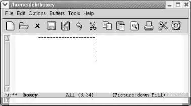 Picture mode turns the area being edited into a kind of drawing board consisting of columns and rows. In picture mode, you can create simple pictures (such as the one in Figure 7-3) using keyboard characters without having them "rearranged" by the word-wrap capabilities of auto-fill mode, for example.