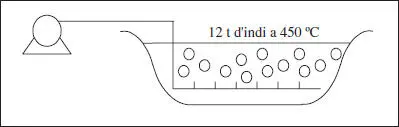 Aquestes aproximacions directes no pareixen adequades. Si som prou imaginatius podrem arribar a un esquema com el de la figura 1.7.Mesclar, granular (pel·letitzar), calcinar, reduir, omplir una columna (reactor) i fer circular un gas calent. Quina idea tan simple! Com no ho havíem pensat abans? No necessita manejar un líquid calent, i només calen uns pocs grams d’indi per a l’operació, el cost dels quals seria aproximadament el d’un bon sopar (d’acord amb Levenspiel).