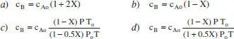 Quina de les següents expressions correspon a la composició de B en un procés en què es desenvolupa la reacció en fase gas, elemental A + B → 2 C + D, en condicions no isotermes? L’aliment és equimolar en A i B.