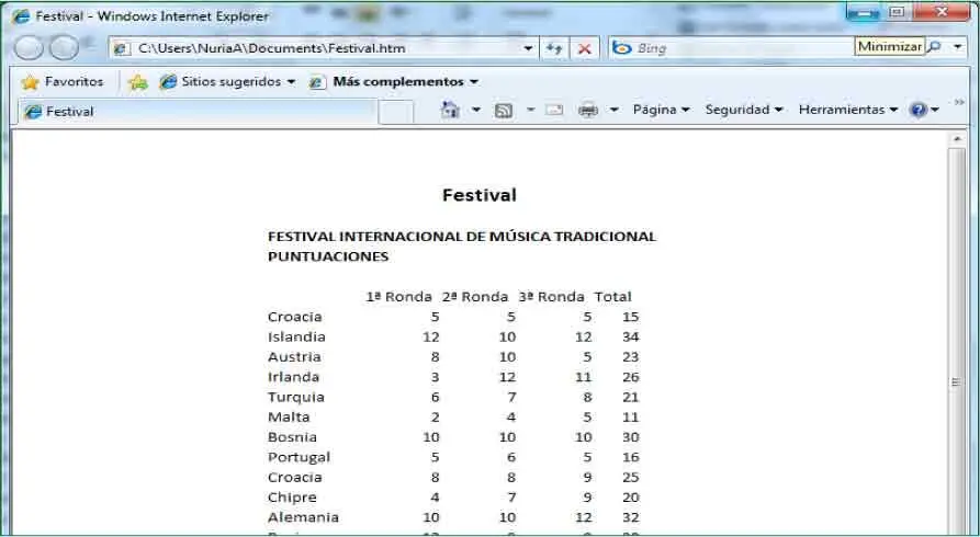 11Se abre así su navegador mostrando la página que acabamos de guardar. Vamos a realizar un cambio en la tabla del libro original para ver qué ocurre en la página. Minimice la ventana del navegador pulsando el botón Minimizarde su Barra de título. ( 8)