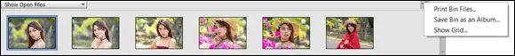 If you want to rearrange the order of the thumbnails in the Photo Bin, you can click and drag any thumbnail to the left or right.