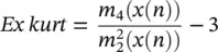 where m i( x ( n )) is the i th central moment of the signal x(n) , i.e. m i(x(n)) = E [(x(n) − μ ) i]. The kurtosis for signals with normal distributions is three. Therefore, an excess or normalized kurtosis is often used and defined as