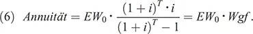 Der Ertragswert einer gleichbleibenden, periodisch wiederkehrenden Zahlung lässt sich gemäß Gleichung (5) mit dem Rentenbarwertfaktor berechnen: