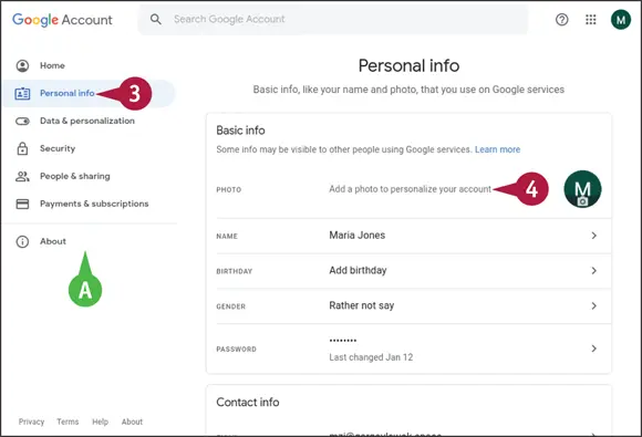 Note: You can click anywhere on the Photo row of the Basic Info table, including your account icon.