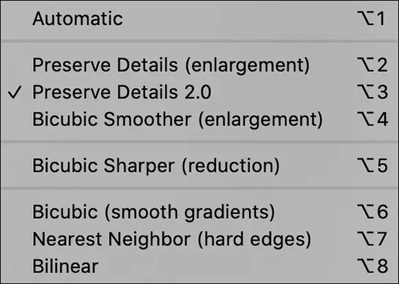 If you know the specific pixel dimensions that you need for the final image — say, for a web page — you can simply type a new number in the Width or Height fields in the Image Size dialog box and click OK. Of course, you probably want a little more control over the process, don’t you? Figure 2-7 gives you a closer look at the resampling options in the Image Size dialog box, with names that suggest when to use each.