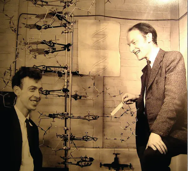 Figure 1.3The discoverers of the structure of DNA. James Watson (b.1928) at left and Francis Crick (1916–2004), with their model of part of a DNA molecule in 1953. Photographed in the Cavendish Laboratory, University of Cambridge, UK, in May 1953.