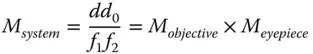 The above formula gives the total magnification of the instrument as the product of the individual magnifications of the objective lens and eyepiece. In this context, these individual magnifications are defined as in Eqs. (2.12a)and (2.12b):